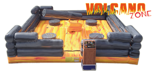 Can you survive the Volcano Zone? Four of you are trapped floating on molten magma on stone podiums trying to avoid the swinging stone debris. Do you jump or do you duck? Either way just make sure that you don’t fall into the fiery abyss waiting for you! Great for school grad nights, prom or team building with the co workers.